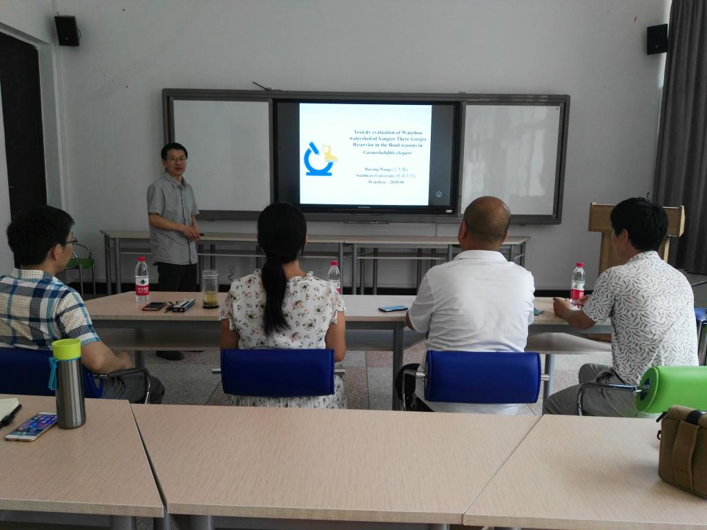 2018年06月29日下午,betway必威中国柔性引进的东南大学王大勇教授在百安校区理科楼B1-216室举办了以《秀丽线虫在三峡水库污染物毒理效应评价中的应用》为题的学术讲座,公司部分师生参与了本次讲座。