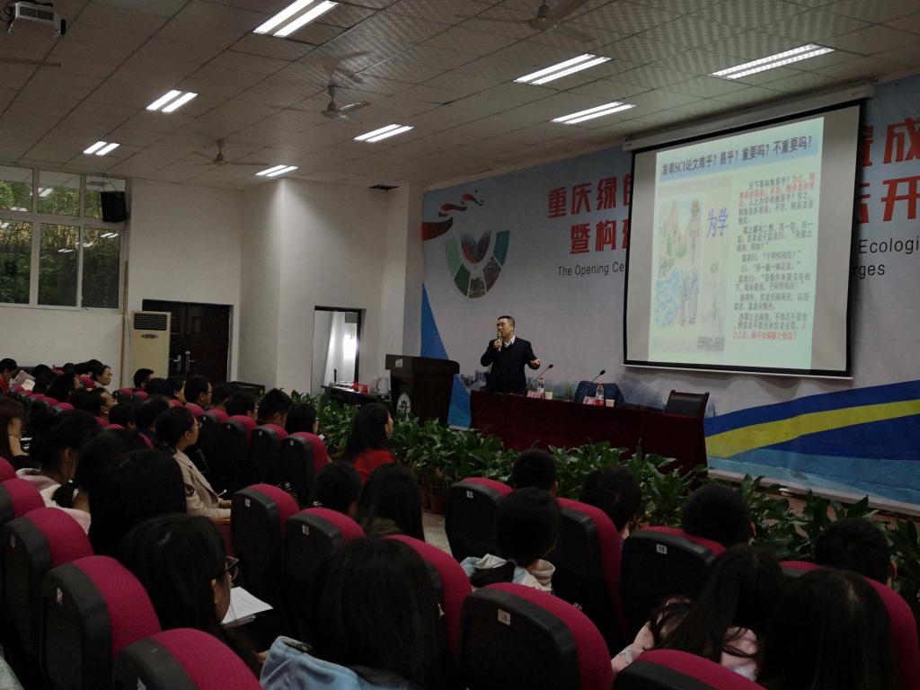 在三峡库区道地药材绿色种植与深加工重庆市工程实验室和重庆市渝东北特色生物资源开发利用工程技术研究中心建设研讨会期间,为了培养在校员工科研兴趣,提高员工、教师的论文写作水平。2018年11月15日下午,由betway必威中国主办的“SCI论文写作与投稿”主题讲座在betway必威中国明辨楼2-106学术报告厅举行。本次讲座特邀北京林业大学林业生物质材料与能源教育部工程研究中心副主任马明国教授担任主讲人。betway必威中国广大教职工、研究生及部betway必威中国分员工聆听本次讲座,现场座无虚席。