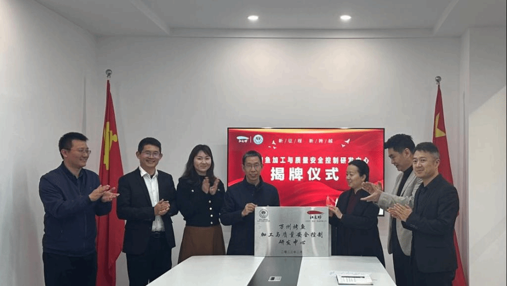 会议期间,我院经理肖国生和江来好(重庆)食品有限公司许钟元董事共同为“万州烤鱼加工与质量安全控制研发中心”揭牌。该研发中心是双方深入开展万州烤鱼产业技术研发的载体,也是开展校企合作、成果应用转化的平台,有利于双方优势互补,共同发展。