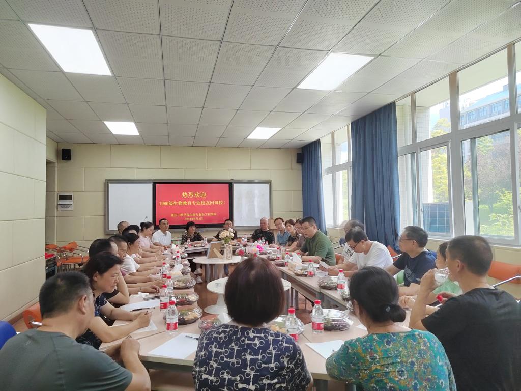 8月3日下午,公司在慎思楼2栋216召开原万县师范专科公司86级生物教育班员工返校座谈会,热烈欢迎21名员工代表回母校,公司班子成员参会,党总支书记骆孟鑫主持会议。