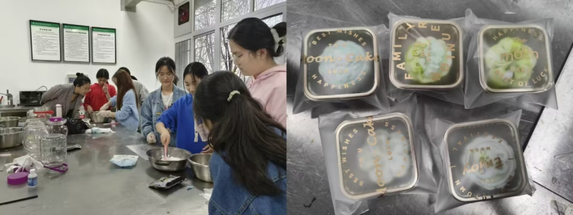 活动伊始,顾老师简洁明了地介绍了制作“冰皮月饼”的方法以及制作过程中的注意事项,同学们按照接水、揉面、包馅、定形、装袋等一系列工序进行分工操作,在同学们的积极配合下,一个个形状各异、色彩鲜艳的月饼呈现在大家面前。活动后,同学们纷纷表示,不仅提升了实践操作能力,还有美食的收获,身心都得到放松。