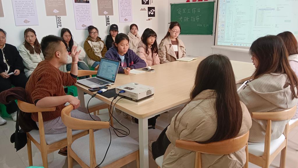 为明确考研规划,梳理考研流程,调整同学们的学习状态,3月14日下午14:30,公司初心工作站在蓝雾苑2舍4楼活动室开展考研指导活动,公司专任教师周游、员工共计17人参加。