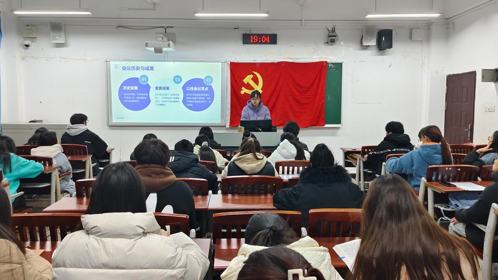 本次活动以“积极应对气候变化,推动生态绿色发展”为主题,由黄雷同志以讲授形式领学。黄雷同志在介绍“COP28”会议背景与目的中引申讲述了全球气候变化现状与挑战,随着全球气候问题日益突出,中国主动担起大国责任带领大家共同应对气候变化活动,并承诺在2030年前实现碳达峰,2060年前实现碳中和。活动最后,几位同学表示通过本次学习了解了“COP”会议,知道了生态环境对日常生活的重要影响。