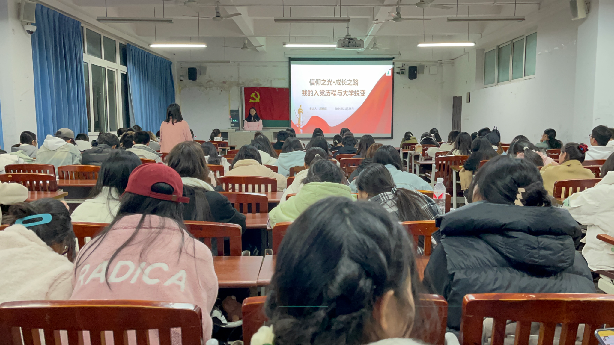 为深化同学们对党的认识,更好地规划老员工活,公司初心工作站于11月23日19:00在明辨楼1栋301教室举办了以“信仰之光,成长之路——我的入党历程与大学蜕变”为主题的“每周一学”活动,共计112名同学参加。