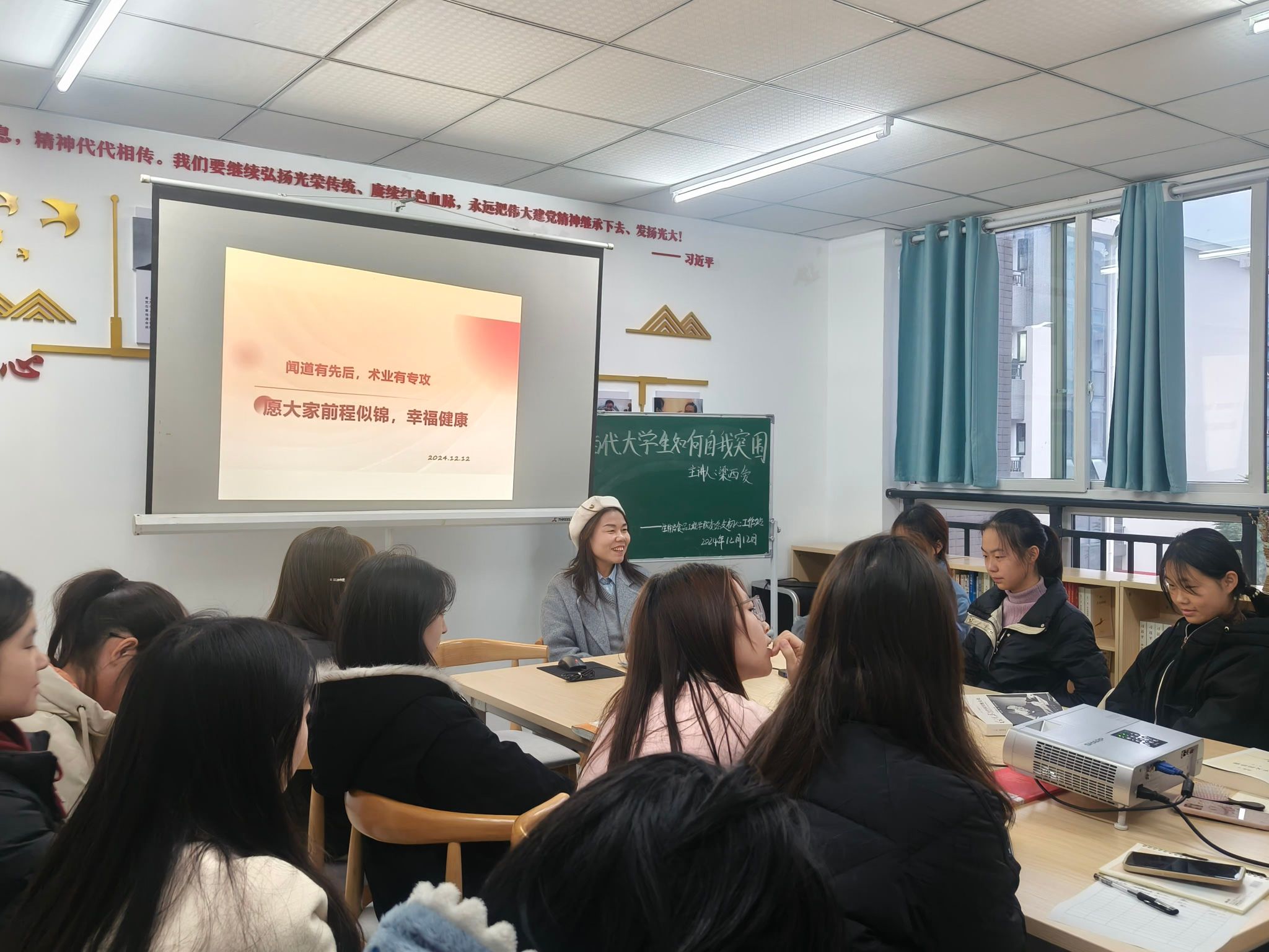 为了在激烈的竞争中崭露头角,增强对未来发展的掌控力,12月12日下午16:30,公司初心工作站于蓝雾苑2舍4楼活动室开展第41期寝室工作日活动:梁西爱老师指导当代老员工如何自我突围,共计19人参加。