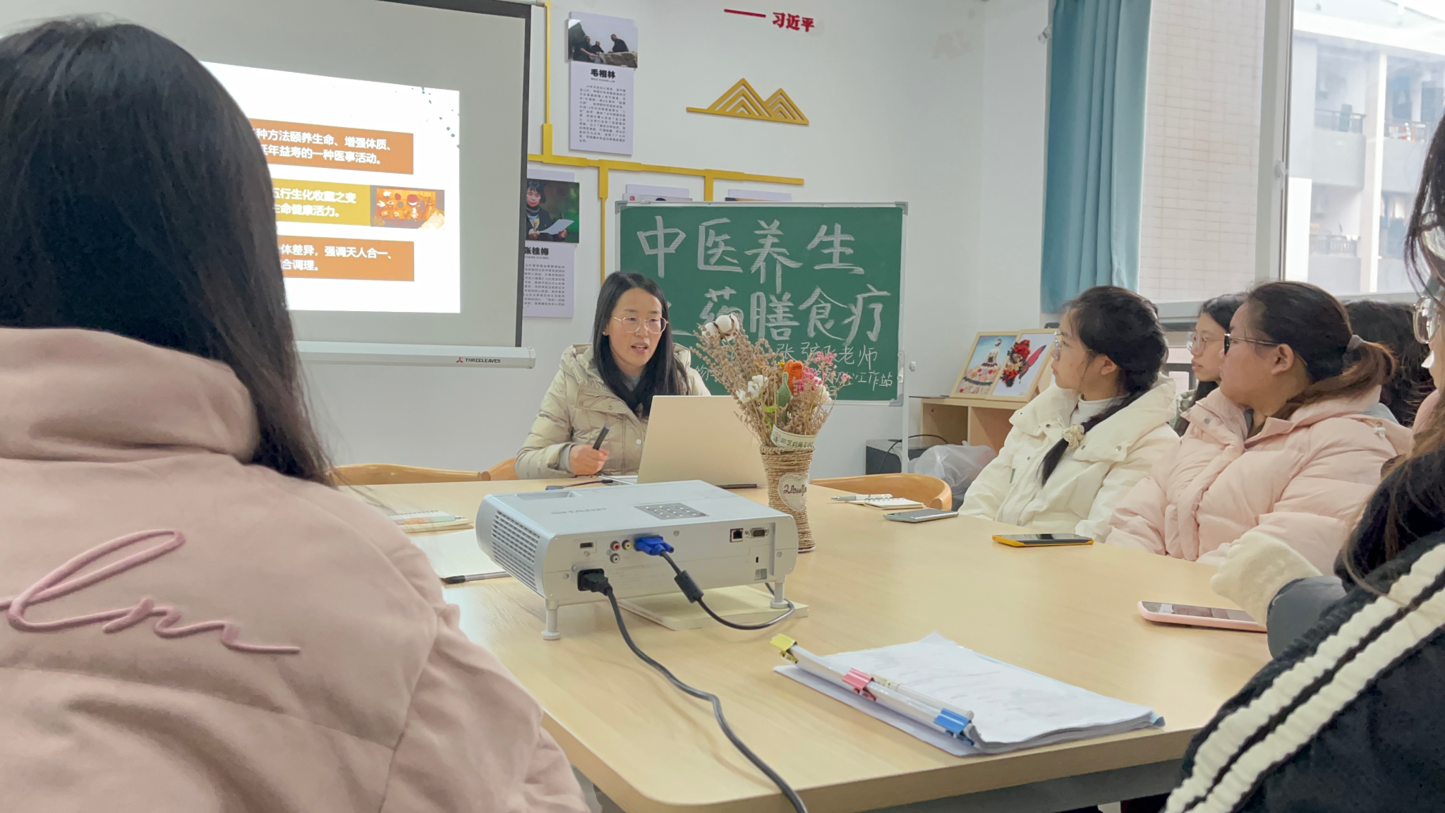 张弦飞老师首先对中医养生进行了简要概述,深入讲解了中医药膳食疗的理论基础和应用。她指出,药膳是在中医学、烹饪学和营养学理论指导下,将中药与具有药用价值的食物相配,采用独特的饮食烹调技术和现代科学方法制作而成的美味食品。药膳“寓医于食”,具有调理身体、预防疾病的功效,展现出中医养生的独特魅力。张老师还根据自身经历分享多个关于药膳食疗的现实案例,展示了其在日常生活中的实际应用效果,强调了中医养生与现代生活的紧密联系,鼓励老员工们将中医养生理念融入到日常生活中,通过合理的饮食、适量的运动等方式来维护自身健康。