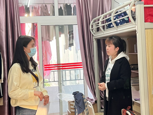 公司辅导员仔细检查了员工宿舍内是否有大功率电器、是否存放有易燃易爆等违禁物品、是否有乱拉乱接电线等情况,教育引导同学们要提高安全意识,遵守宿舍管理规定,养成良好的生活和卫生习惯。期间,辅导员了解关心了毕业生考研、就业等情况,与未就业员工展开了讨论交流并给出建议,同时与同学们就学习方法、社会实践、能力提升等方面进行交谈,并提醒同学们遵守疫情防控要求,维护校园和谐稳定。(龙颖)