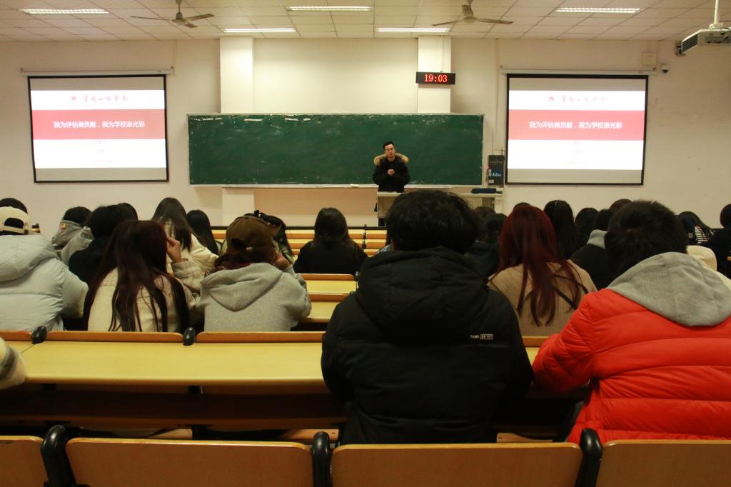 为迎接本科公司产品审核评估,11月26日下午,公司辅导员分年级开展“我为评估做贡献,我为公司添光彩”专题教育,公司全体员工参加。
