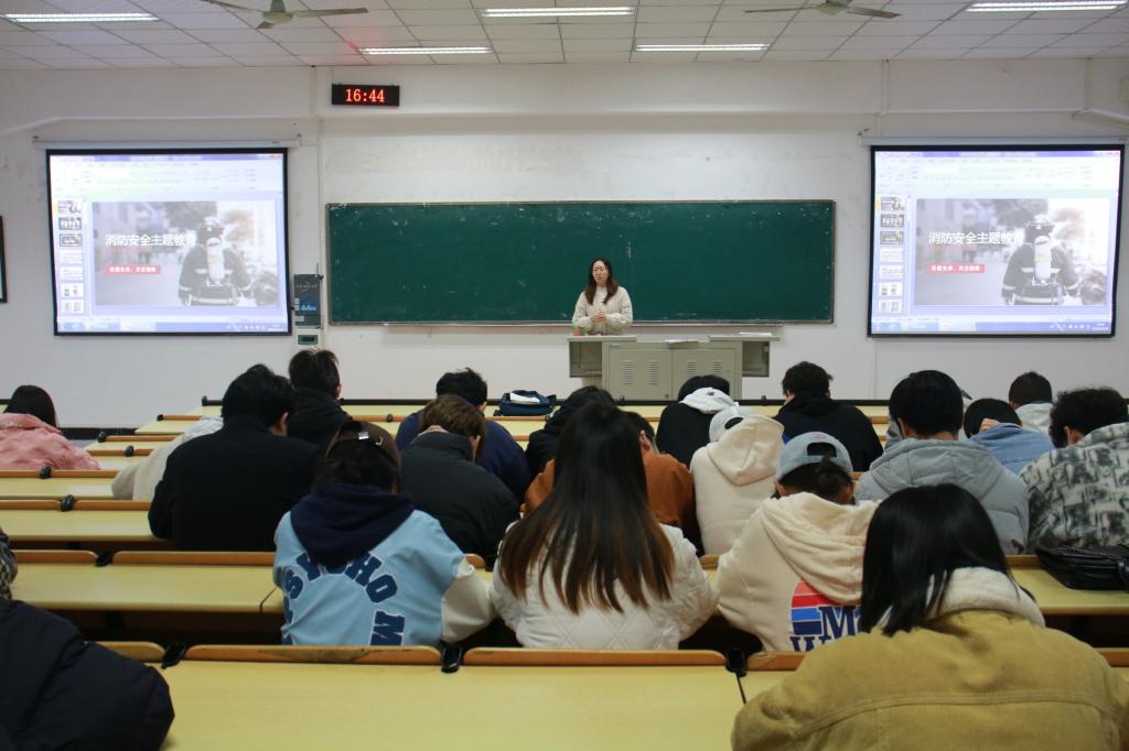 会上,辅导员通报了一起校园起火案例,结合案例总结了警示意义,从火灾的特性、火灾的预防、火灾的应急处理、常用消防器材介绍、灭火器使用实操等方面开展了消防安全专题教育。辅导员还开展了诚信考试教育、反诈宣传教育、安全教育。