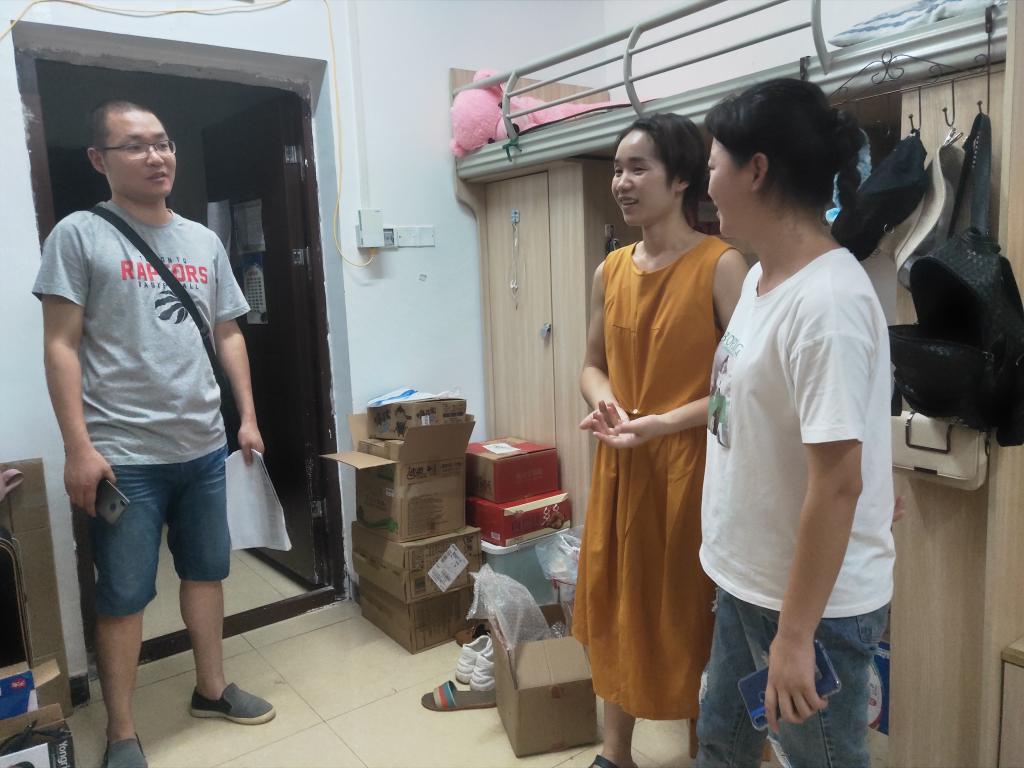 8月2日晚上21:30,生工公司学工办主任李华林、辅导员蒋园园走访暑假留校员工寝室,了解同学们暑期在校学习、生活等状况,并针对问题给予关心、帮助和指导。