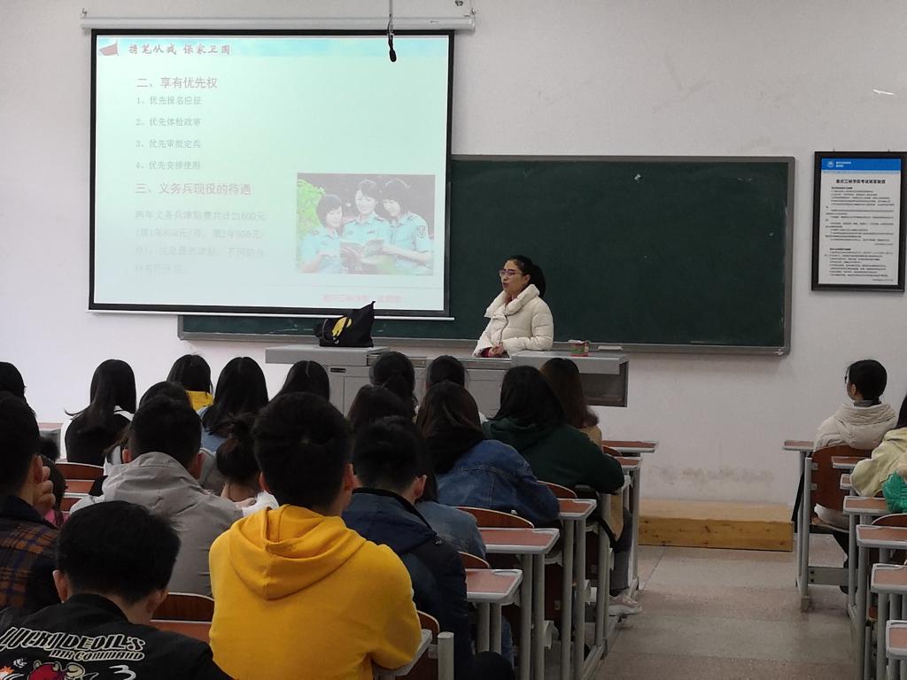 各位老师从兵役登记政策及要求、老员工应征入伍的重要意义、现役和退役的待遇、优惠政策、报名流程、发展前景等方面进行讲解,并呼吁符合条件的同学们积极应征入伍。作为一名新时代的老员工,走入军营,不仅能够改善部队士兵队伍的素质结构,为军队人才战略工程、信息化建设注入生机和活力,促进部队和谐稳定,还能经过军队的培养教育,锻炼出能吃苦、有特长、守纪律的优秀品质和坚强意志。