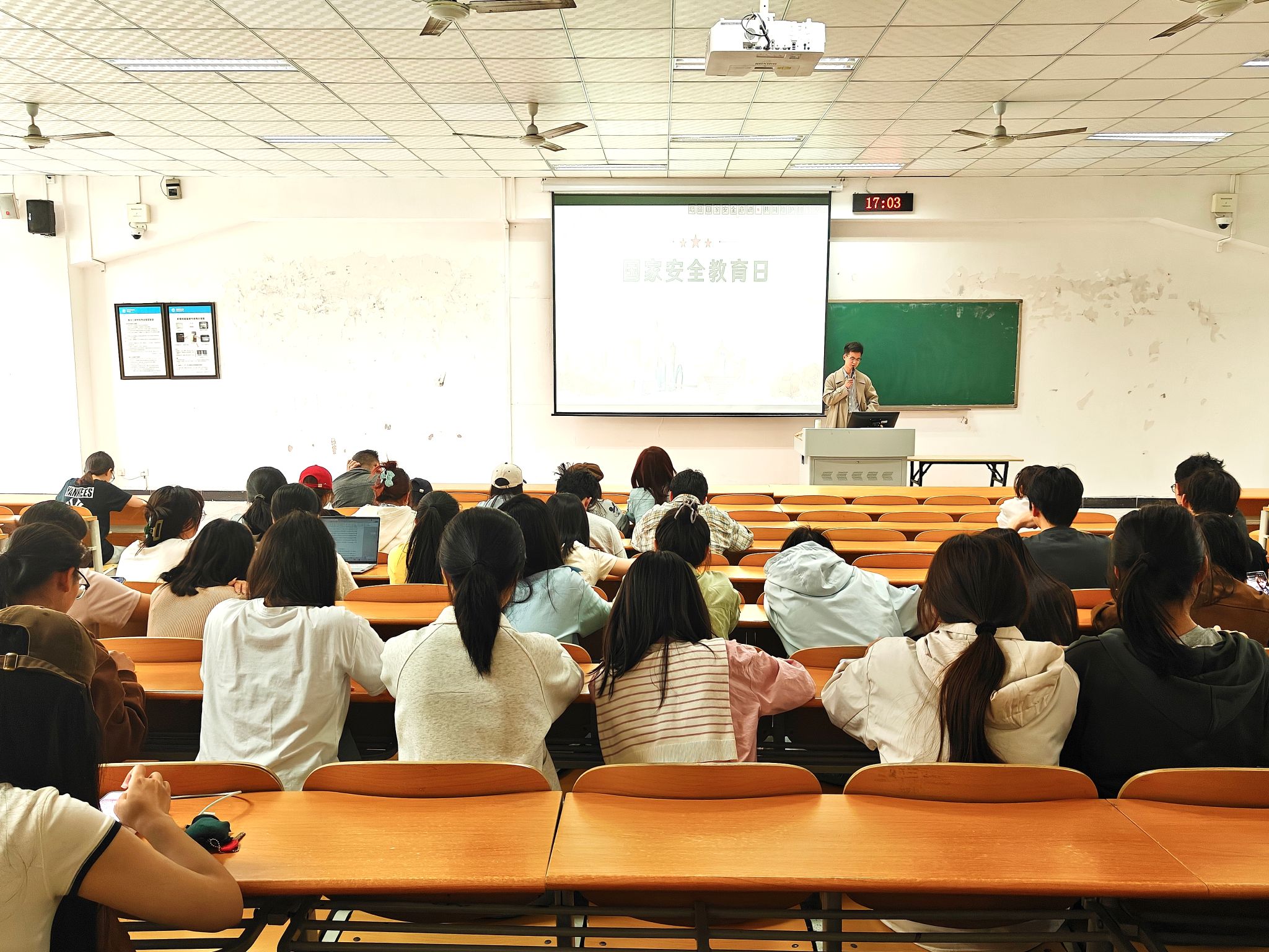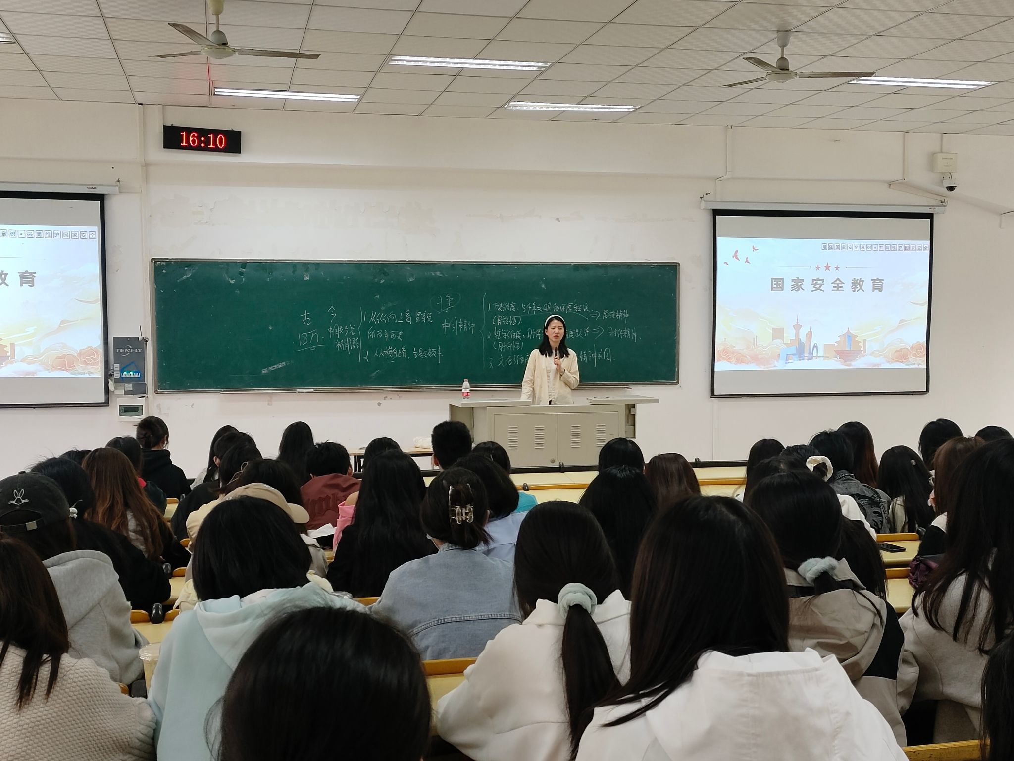 会上,辅导员就危害国家安全的行为有哪些,如何维护国家安全和谁来保卫国家安全三个方面进行讲述,着重强调了维护国家安全的重要性,提升了同学们的法律认知和安全防范能力。辅导员介绍了网络信息安全领域的知识,提醒员工要增强网络防范意识,保护个人信息和隐私,防止电信网络诈骗等安全事件的发生。辅导员还系统性地解读了国家关于民族平等、民族团结、民族区域自治以及宗教信仰自由等方面的基本政策与法律法规,重点阐述了“中华民族一家亲,同心共筑中国梦”的核心要义,强调了铸牢中华民族共同体意识对于国家统一、民族团结和社会稳定的极端重要性。