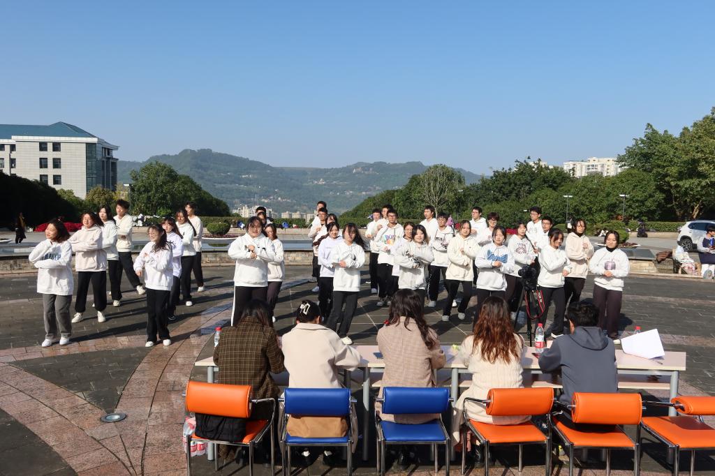 为促进员工身心健康、全面发展,11月16日14点,公司员工会心理健康部与组织部在莲花广场开展“青春校园行,舞动新青春”心理健康操比赛,辅导员龚莉老师、龙颖老师和主席团成员吴圣杰、欧巧钰,团联主席任秋敏担任评委,2022级和2023级全体员工参加。