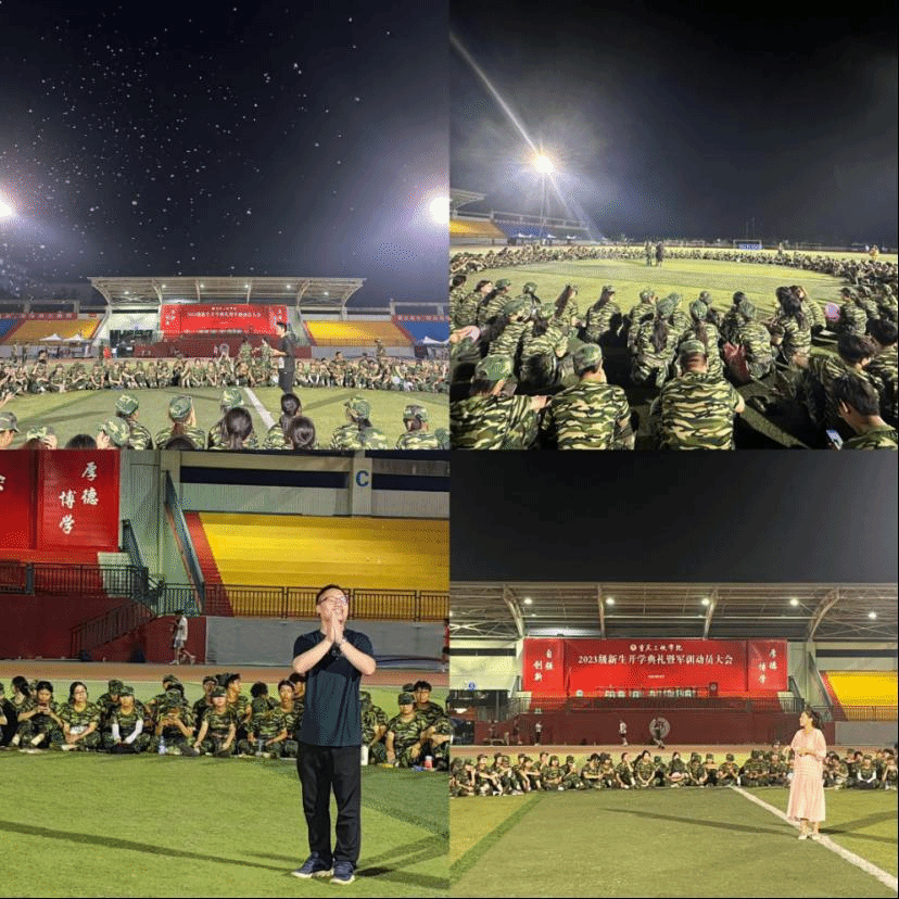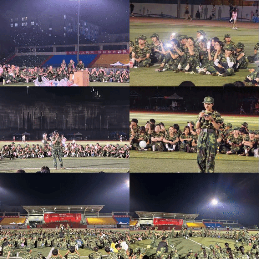 2023年9月18日晚,公司在新生当晚军训结束后,组织开展了别开生面的军训晚会。2023级新生辅导员熊小飞、2023级新生班主任代表尹福强、2023级新生助班以及2023级全体新生参加。