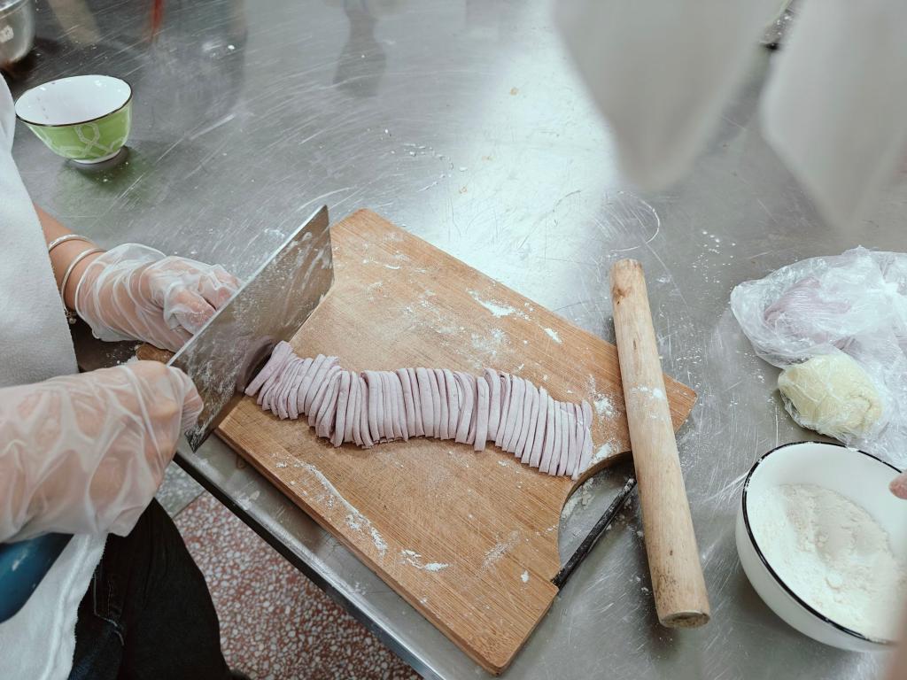 活动中,工作人员介绍了制作手擀面的材料以及制作流程,强调了制作过程中的安全问题。参与者们以小组为单位投入到实践操作中,大家开始和面、揉面、擀面、切面,最后煮面。整个过程充满欢声笑语,洋溢着温馨的气氛。同学们还互相交流心得,分享家乡的特色面食,增进彼此的了解和友谊。最后,全体工作人员与会员们合影留念。