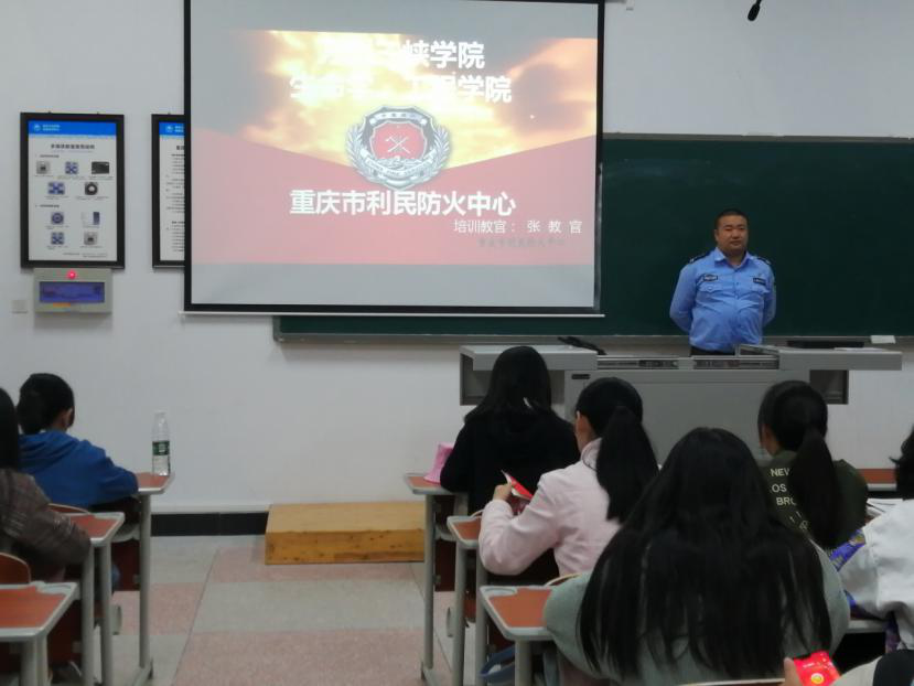 10月11日19:00时,重庆市利民防火中心的张教官为公司18级新生、高年级班团干部讲解了消防安全方面的知识。主要内容是:如何识别犯罪嫌疑人、遇到罪犯时如何进行自救和求救、各种犯罪案例以及特殊救援手电的三大特点等。在整个演讲中,公司同学们积极地和张教官进行互动,认真学习张教官所讲的自我防卫以及在危机时机如何向他人求救。