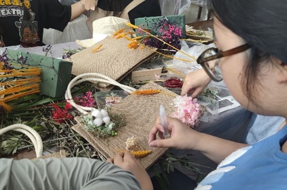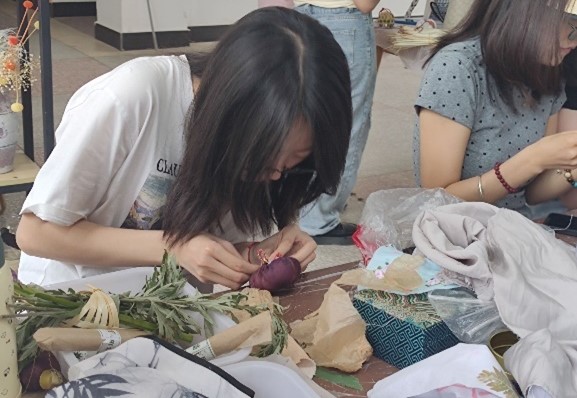 端午节,这个拥有数千年历史的传统节日,不仅蕴含着深厚的文化底蕴,更有着丰富多样的传统习俗。首先进行的祈福签到环节安排了打卡点供合影留念。随后的包粽子大赛,老师和同学们亲手包粽子,享受制作传统食物的乐趣。活动提供了香草和布料等材料,让大家可以挑选自己喜欢的材料,制作独特的香囊,在淡淡的香气中,感受那份来自传统的温馨与关怀。端午节习俗丰富多彩,各式各样,除香囊外大家还制作了艾草小船、布袋、挂饰、扇面贴花等艺术品,赋予这些东西以生命的灵魂,将艺术与传统节日很好地结合在一起。在动手制作的过程中,大家对传统材料和技艺背后的文化意义有了更深刻的理解和欣赏。