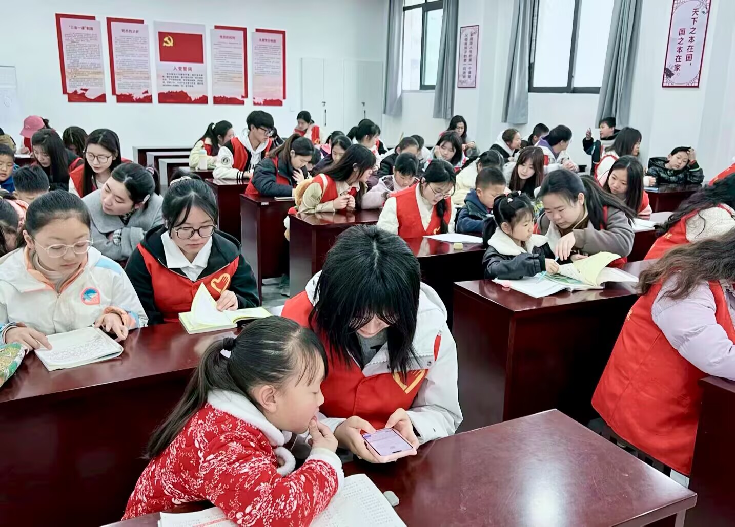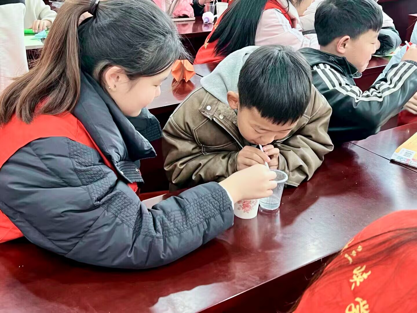 活动伊始,志愿者们充分发挥奉献精神,凭借自身扎实的知识储备,耐心地为小朋友们辅导功课。辅导功课之后,志愿者们化身为“科学老师”,将复杂的科学原理巧妙融入趣味实验。孩子们瞪大眼睛,紧紧盯着实验器具,生怕错过任何一个细节。在志愿者耐心指导下,小朋友们亲手操作,感受着科学带来的惊喜与快乐。