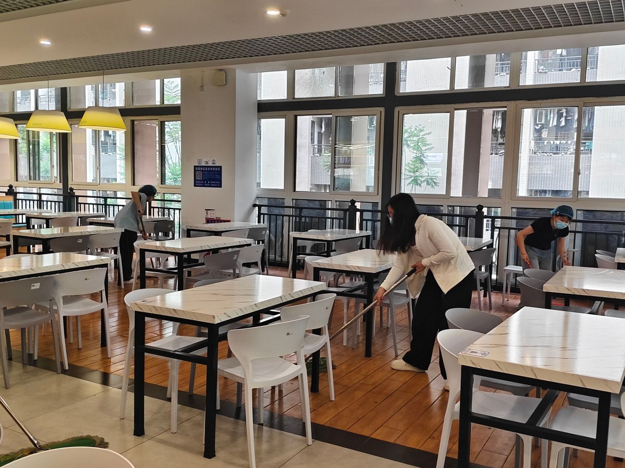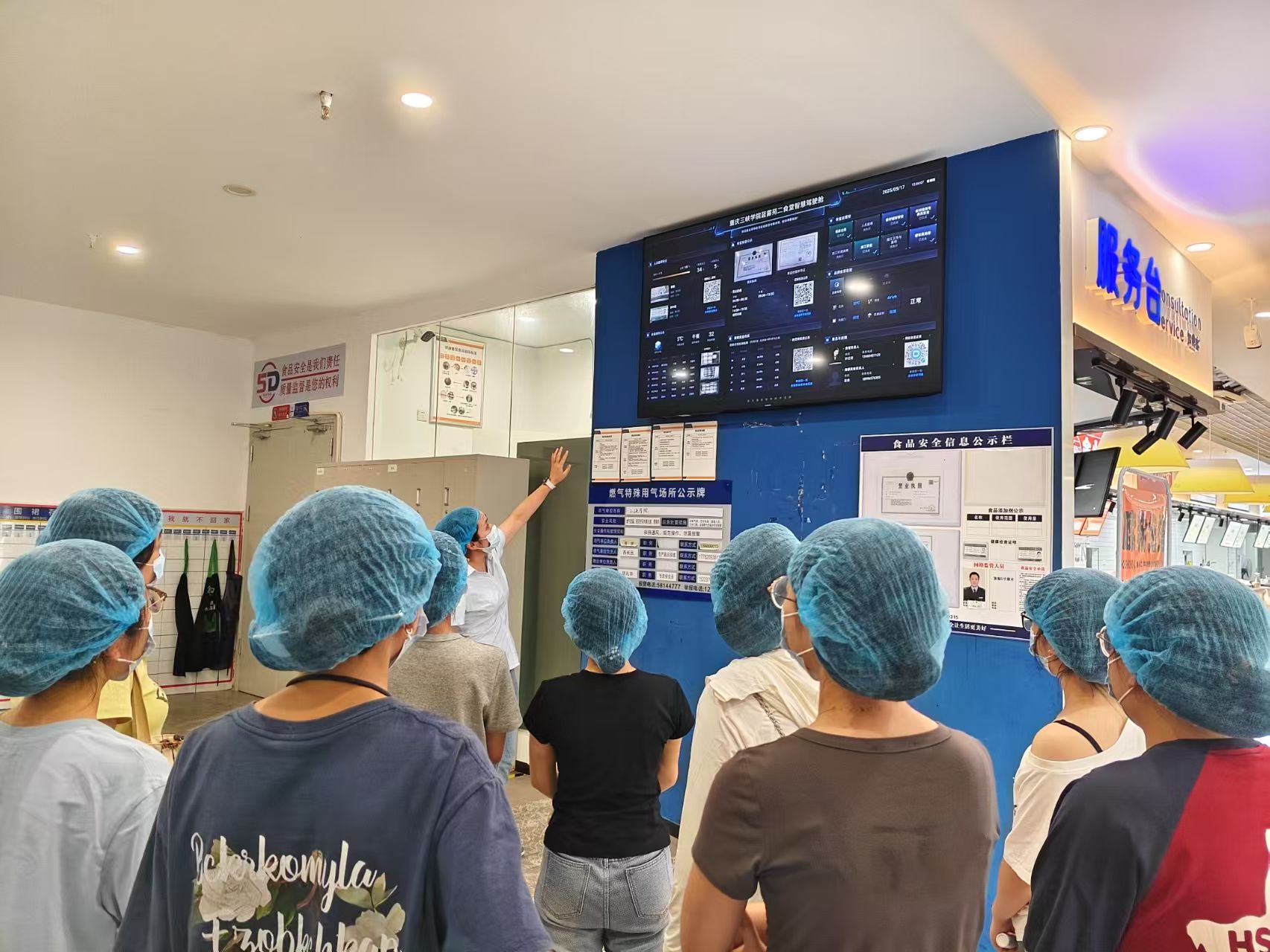 活动开始,同学们在指定地点集合,工作人员强调纪律和注意事项。随后,在食堂工作人员的带领下,同学们有序参观食堂的食材采购区、储存仓库、食品加工区等区域,全面了解食堂保障食品卫生安全的细致举措。参观结束后,同学们开展劳动实践,帮助食堂工作人员清洁用餐区域。活动尾声,全体人员合影留念后,食堂还为同学们安排了免费的就餐体验。