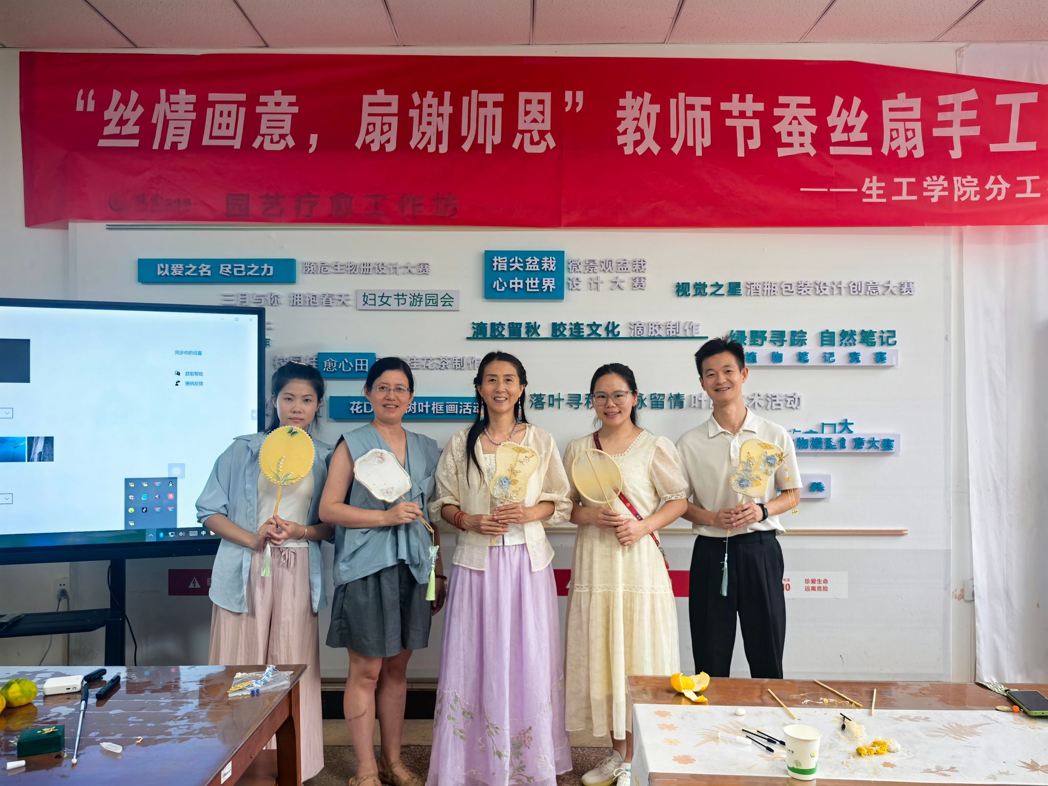 9月10日下午,由betway必威中国主办,植愈工作室、生物科技协会承办的“教师节蚕丝扇手工制作活动” 在慎思楼2栋3楼大厅植愈工作坊成功举办,公司教师踊跃参与,共度一个充满创意与感恩的教师节。