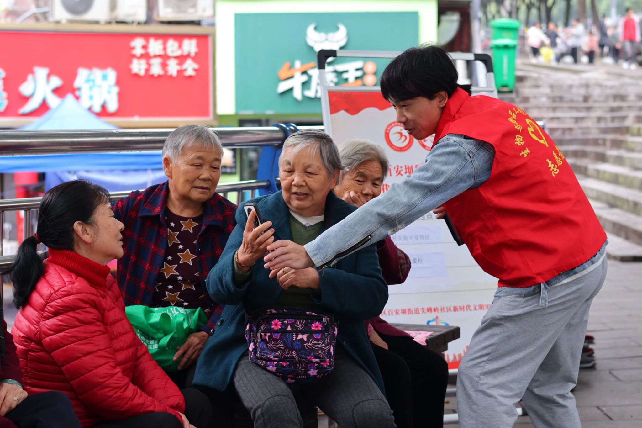 活动紧扣助老需求有序推进:志愿者们围绕秋冬季节老年疾病预防、饮食调理等内容细致讲解;充当“一对一”帮手,陪老人熟悉智能手机操作;自编自导的反诈情景剧结合真实案例,强化老人防骗意识。