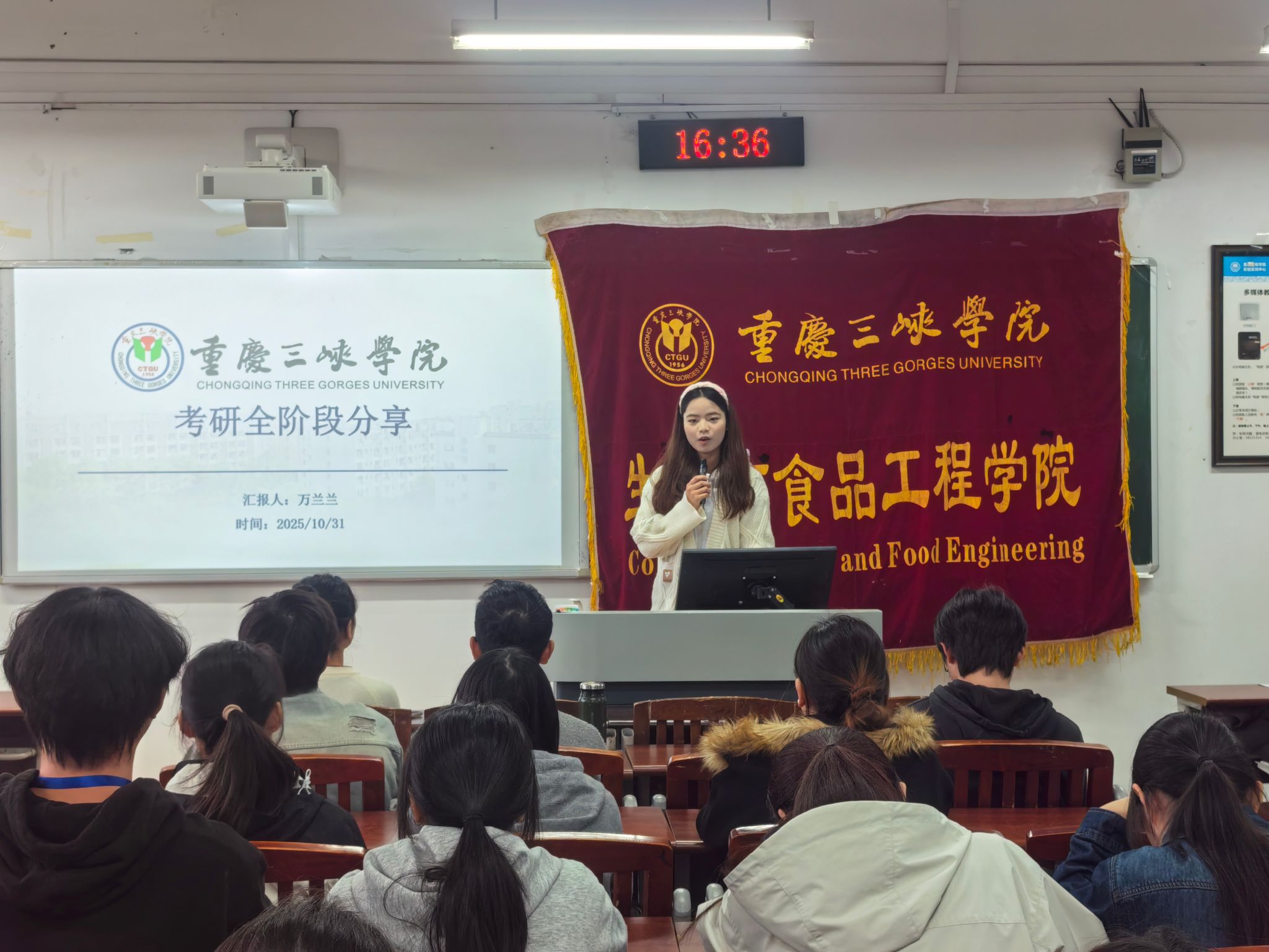 为助力公司同学提前规划考研方向,2025年10月30日下午,公司老员工科技协会于明辨楼1-303教室举办“以梦为马,一战成硕”考研月主题宣讲活动。此次活动邀请了来自不同专业的4位研究生学长学姐担任主讲嘉宾,共计40余名学子听讲。