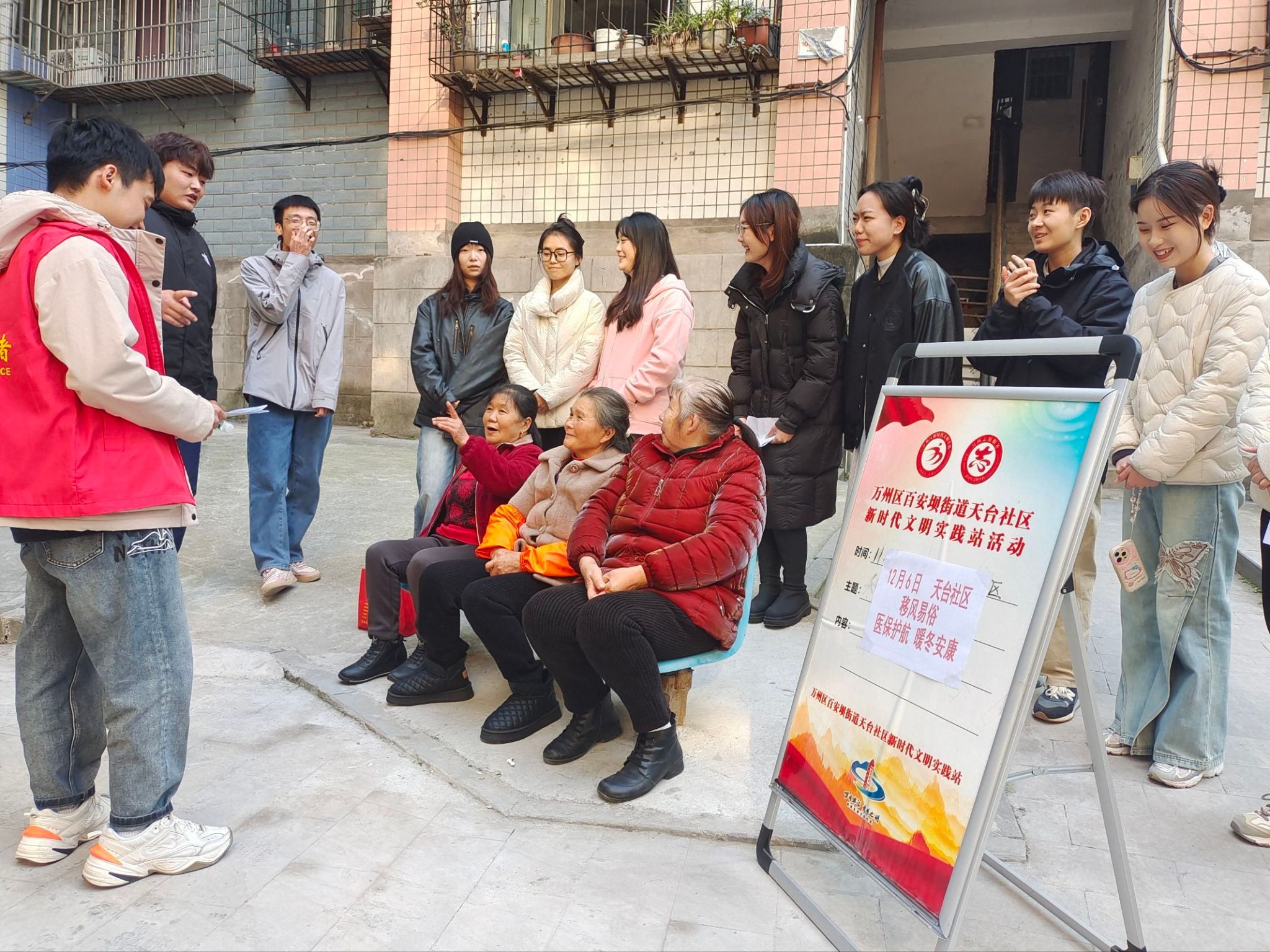 2025年12月6日下午,公司研究生志愿者走进天台社区,开展以“医保护航,暖冬安康”为主题的全民健康志愿宣讲活动,旨在帮助居民深入了解医保政策,掌握冬季健康管理知识,共同守护社区居民健康。
