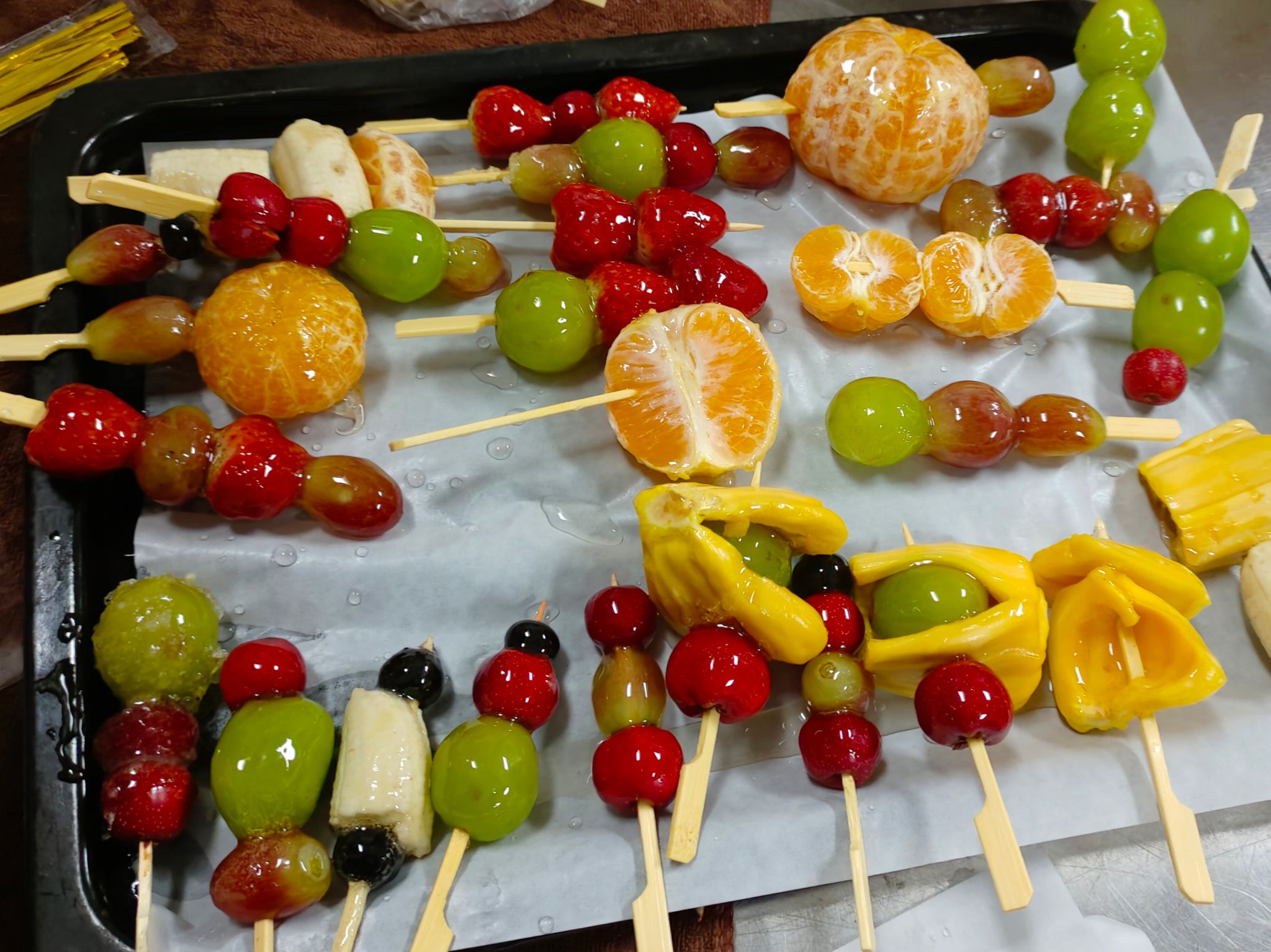 活动伊始,工作人员结合PPT细致讲解了糖葫芦制作的全过程,并对相关工具操作、食品卫生及用电安全进行重点说明。在实践环节中,参与者认真清洗山楂、葡萄、橘子等食材,并将其串成错落有致的水果串。随后,在工作人员的指导下,大家一同熬制糖浆、均匀裹糖,创意制作出各式各样的糖葫芦。活动现场气氛热烈,充满欢声笑语。
