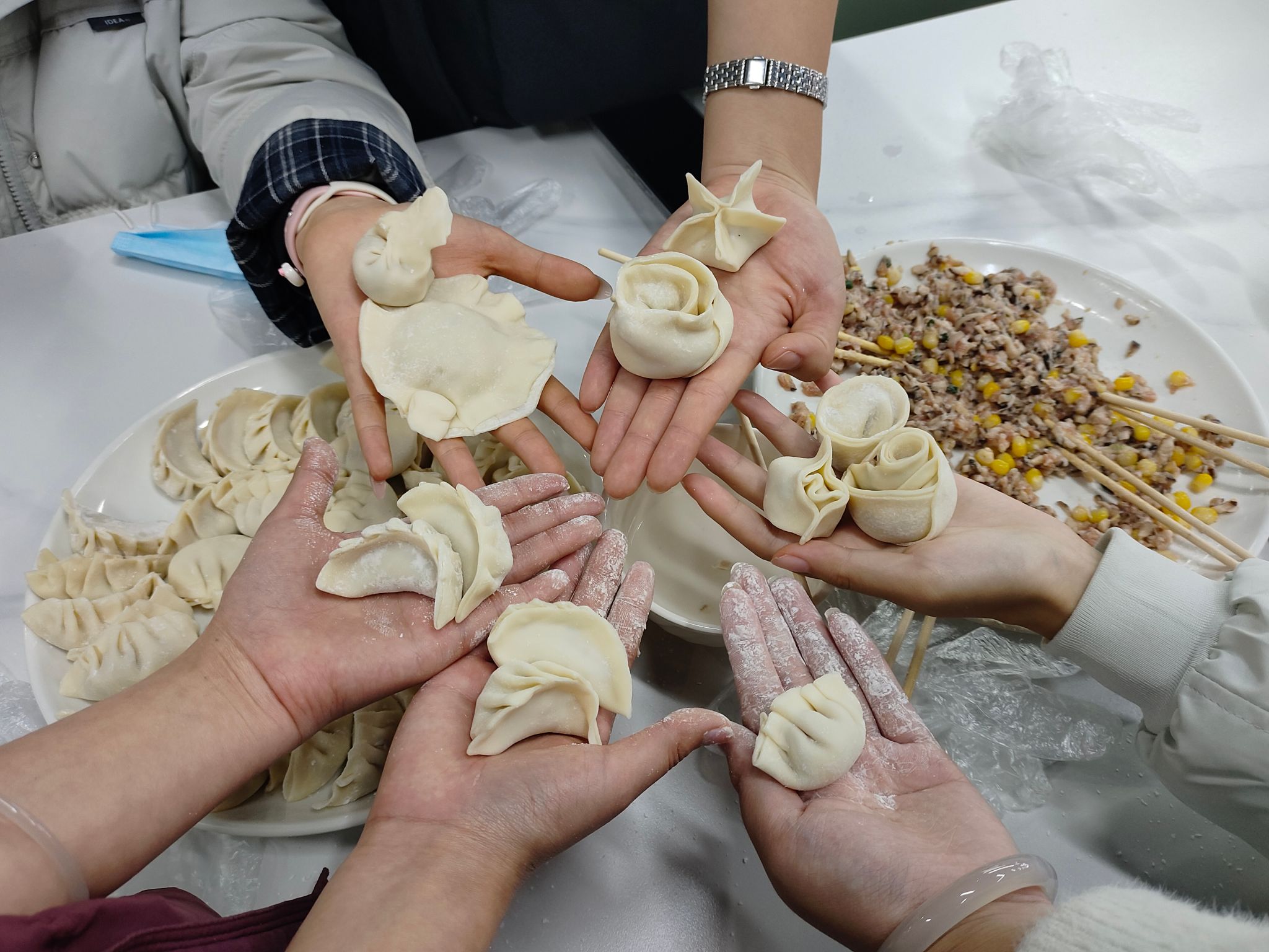 活动现场,工作人员强调了操作安全与食品卫生规范。随后,通过科普视频与PPT讲解,同学们既了解了冬至的传统习俗,也学习了调馅、包饺子的具体技巧。大家分组协作,从拌馅、包制到创意造型,场面温馨,笑声不断。活动还设置了冬至知识抢答与“最佳创意饺子”评选环节,玩偶、定制马克杯等特色奖品的亮相,进一步活跃了现场气氛。活动最后,同学们围坐在一起,品尝亲手包制的饺子。热气袅袅中,洋溢着温暖的喜悦。