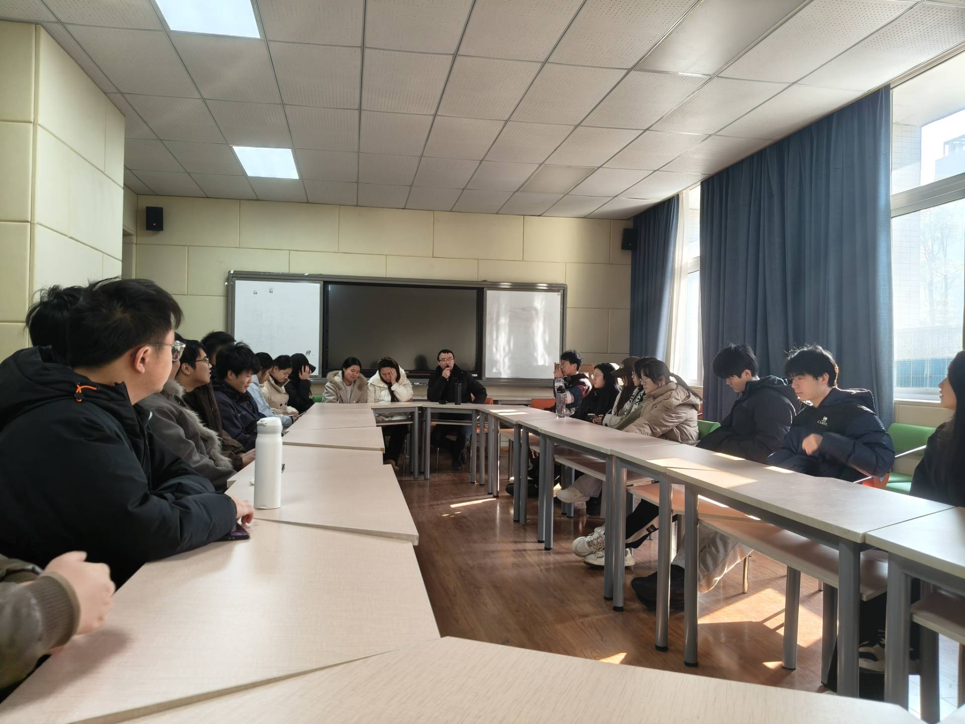 2026年1月13日,公司在慎思楼2栋216会议室开展“师长领航,朋辈同行”领导干部联系班级活动,公司经理汪开拓和2024级园艺班同学参加。