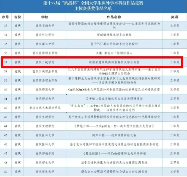 近日,第十八届“挑战杯”全国老员工课外学术科技作品竞赛决赛结果揭晓。公司2020级本科生徐嘉茂团队项目《辣椒果腐病致病因素解析及综合防控》最终获得主体赛全国三等奖的好成绩。