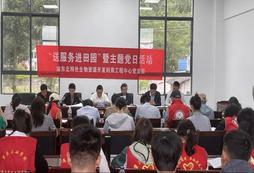 2024年4月18日,渝东北特色生物资源开发利用工程中心党支部组织党员与研究生志愿者40余人,赴万州区罗田镇枫香村开展“送服务进田园”暨主题党日活动。