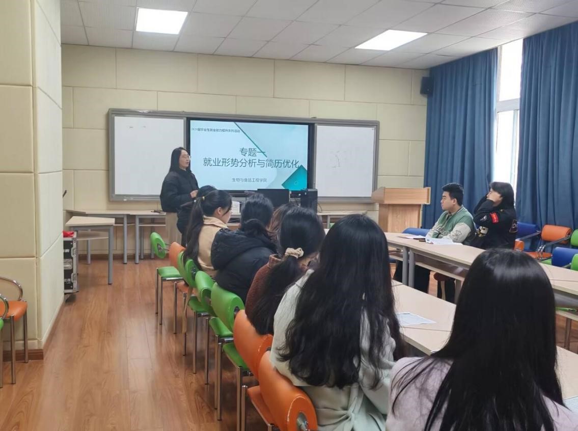 活动中,就业专干闫兴运老师立足宏观就业环境,结合行业大数据与区域人才需求,深度剖析当前经济形势下产业结构调整对就业市场的影响,提出“动态调整求职策略、强化复合型技能储备”的应对建议,并系统性讲授简历制作的核心要素与差异化呈现技巧。辅导员熊小飞、龙颖现场“一对一”进行简历修改,针对员工的专业背景、实践经历进行个性化指导,帮助员工规避“海投式简历”误区,提升人岗匹配精准度。本次活动累计优化简历95份,同学们均有收获,达到预期效果。